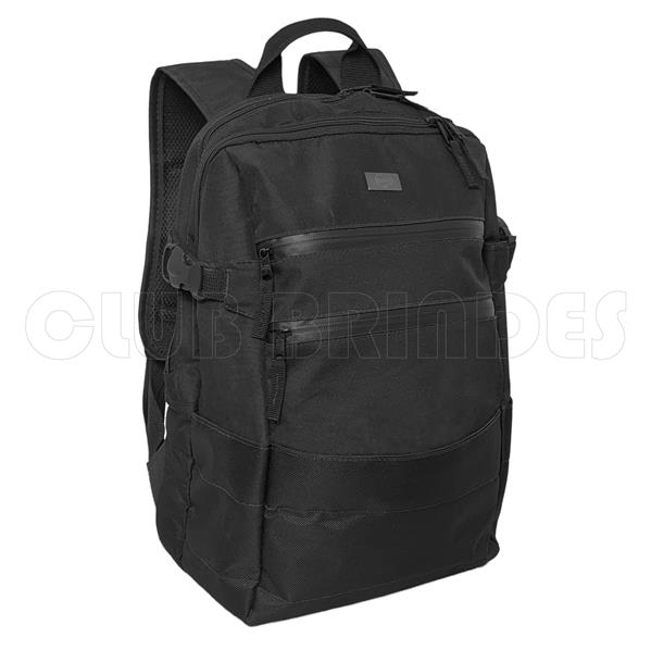 Mochila para notebook em Oxford com dois compartimentos forrados. O compartimento posterior tem duas divisórias almofadadas para notebook até 15.6'' e tablet 10.5''. O compartimento frontal tem diversos bolsos interiores. Mochila com 3 bolsos frontais e 2 bolsos laterais, parte posterior almofadada, com sistema de apoio acolchoado para as costas e alças almofadadas. 320 x 450 x 190 mm. Gravação da logomarca em 1 cor já inclusa.